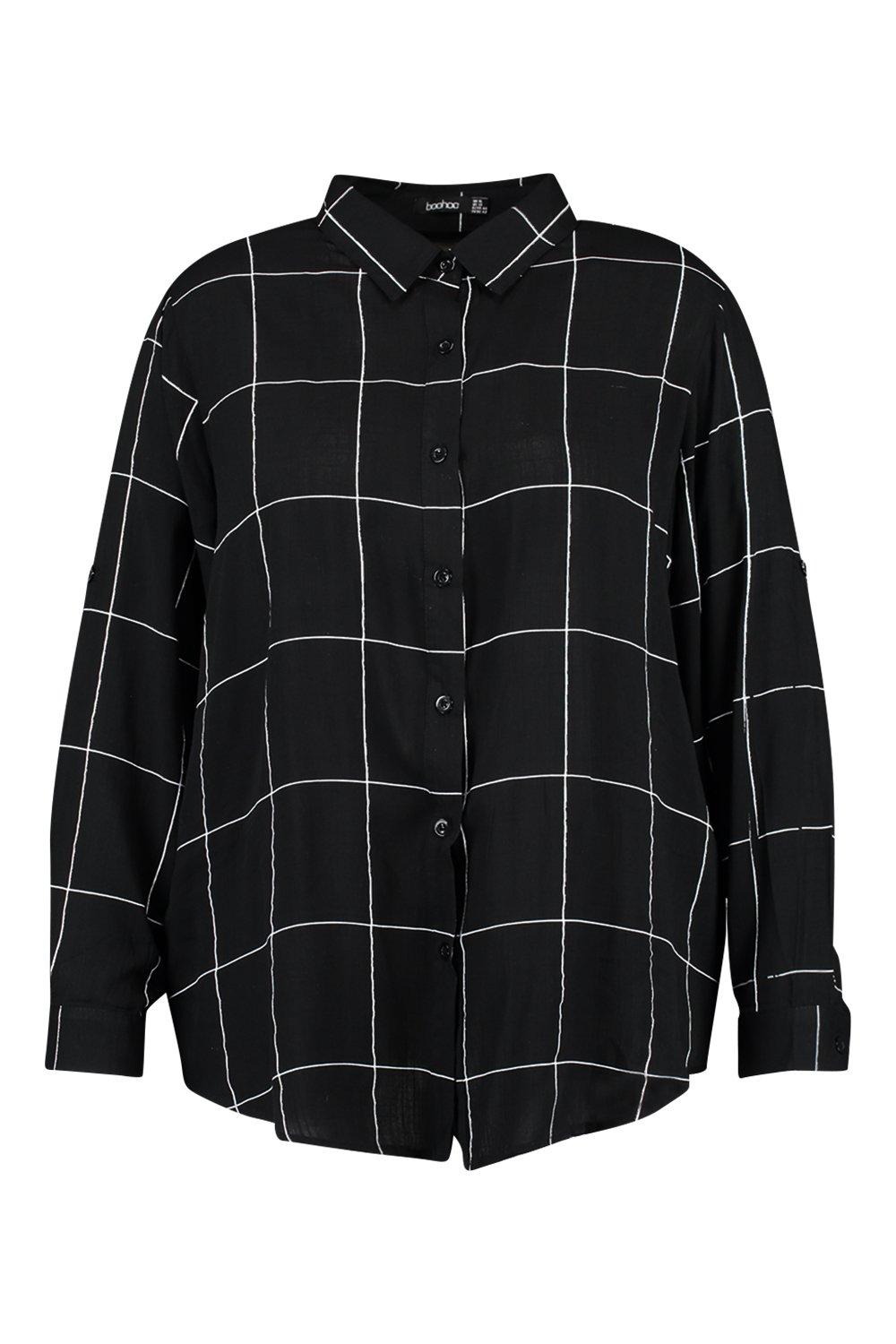 Women's Black Plus Grid Check Oversized
