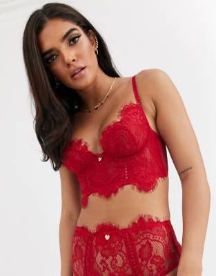 Lipsy Lonnie longline lace bra in red