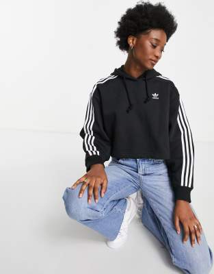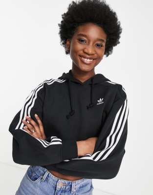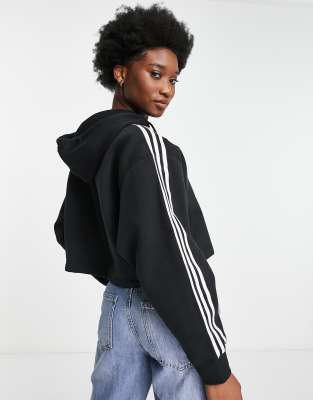 Adidas Originals Adicolor 3 Stripe Cropped Hoodie in Black