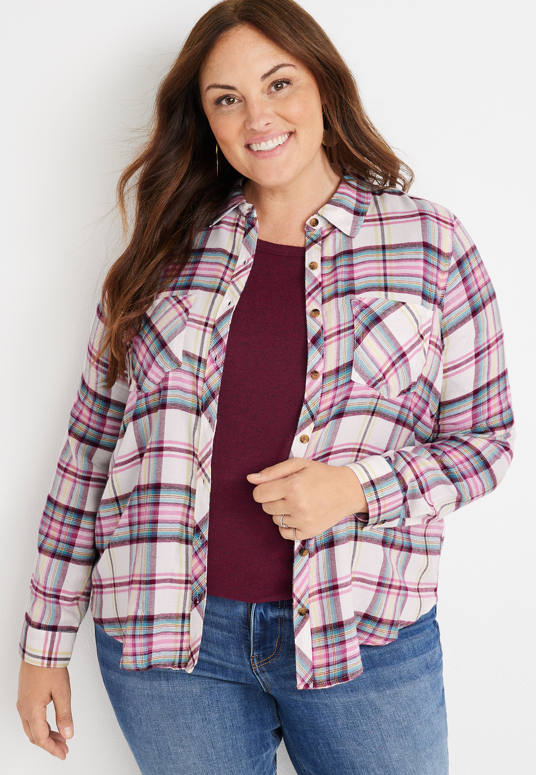Pink Plus Size Plaid \u0026 Button Down