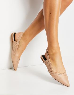 River Island Asymmetric Mesh Slingback Flat Shoe in beige-Neutral